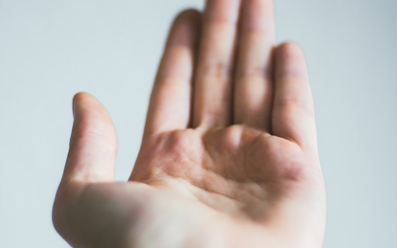 自然光の下で手をリラックスして軽く開きましょう。強く開くと線が消えて見えにくくなります。